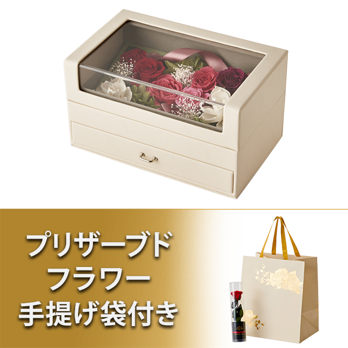 - プリザーブドフラワーは自然の花を使用しておりますので写真と若干違う場合がございます。予めご了承ください。