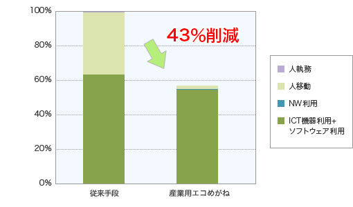 - ※グラフは従来手段のCO2排出量を100%として表しています。