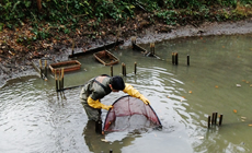 H24年12月15日(土)に水を抜いた池からのニッポンバラタナゴ採りあげと池の底に溜まったヘドロの掻き出し作業を行いました。