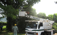 作業はバケット車5台、軽トラック3台を使用しての剪定や清掃を行いました。