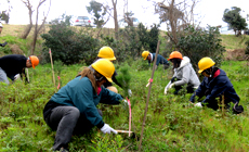 鳥取グループは2013年から5年間にわたり八頭町(やずちょう)において竹林整備活動に取り組んできましたが、2018年10月に新たに鳥取県、鳥取市と森林保全・管理協定を締結し、11月に福部町湯山鳥取砂丘オアシス広場付近の約1.06ヘクタールの土地に抵抗性クロマツ約200本を植樹しました。