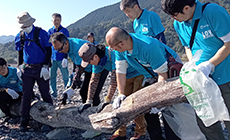 〈力を合わせた清掃活動〉