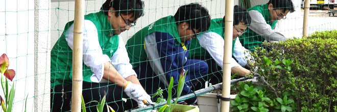 The main objective of this activity is to plant creepers in the surrounding areas and inner courtyard of the buildings where Gifu Business Unit companies are located (Kano Building and Umegae Building) so as to help reduce temperature rise inside the buildings due to intense heat from the sun.