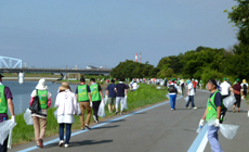 "Kinokawa River Mass Cleaning" is part of the activities for the "River Protection Month" that is fixed in July every year by the Ministry of Land, Infrastructure, Transport and Tourism. The aim is to actively promote efforts for revitalizing the entire river and maintaining it in good condition, while at the same time raise awareness about river protection as well as proper utilization of rivers.