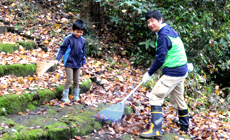 Children who participated helped out while struggling with the use of bamboo brooms and rakes which they were not used to, and thanks to the cooperation of all the participants, the beauty of the "Fureai no Mori" forest is now restored.
