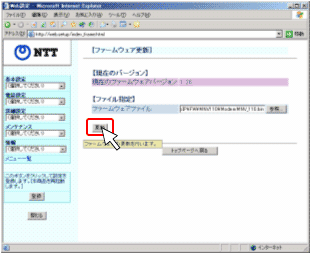 - 【ファイル指定】の「ファームウェアファイル」で[参照]をクリックます。