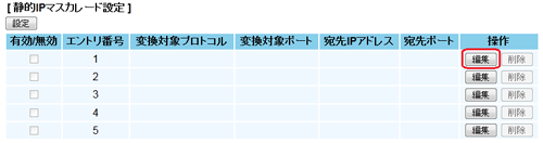 設定するエントリ番号の[編集]をクリックし、下記のように設定する |
