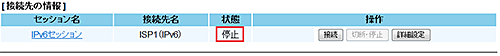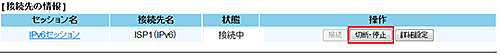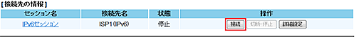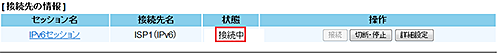 | 設定された接続先について「基本設定」−「接続先設定(IPv6 PPPoE)」で接続/切断できます。 |