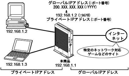 ネットワークゲームを利用する際に、初期設定状態でルータを使用するとIPマスカレードが働いてネットワークゲームなどができなくなる場合があります。