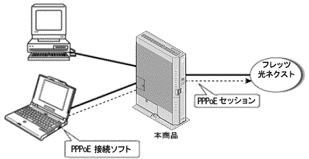 ただし、下記のような状態では、PPPoEブリッジでのみ動作します。