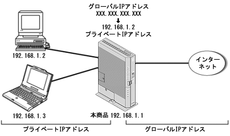 IPマスカレードとは、1つのグローバルIPアドレスを利用して、LAN内のプライベートIPアドレスを持つ複数のパソコンをインターネットに接続できる機能です。IPマスカレードの場合は、WAN側からLAN側のパソコンのいずれかを指定してアクセスを開始することはできません。