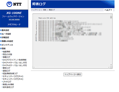 障害ログの内容を表示します。
