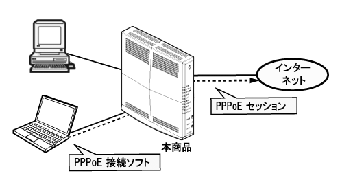 - パソコンのOSに標準搭載のPPPoE機能を使用して、インターネットなどに直接接続できます。