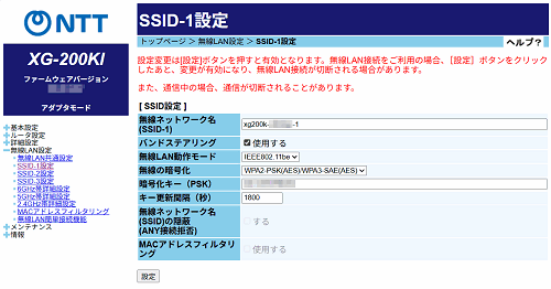 無線ネットワーク名(SSID-1)(初期値:xg200k-XXXXXX-1(XXXXXXは本商品WAN側のMACアドレスの下6桁(半角小文字))※)