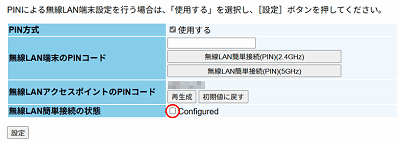 - 「無線LAN簡単接続の状態」の「Configured」のチェックを外し、[設定]をクリックする