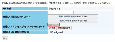 [再生成]をクリックすると、無線LANアクセスポイントのPINコードを再生成します。