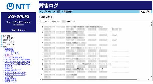 障害ログは、本商品で発生した障害/通知に関する項目を表示します。