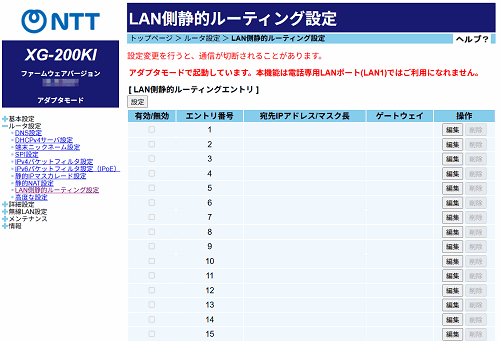 アダプタモードで起動しています。本機能は電話専用LANポート(LAN1)ではご利用になれません。