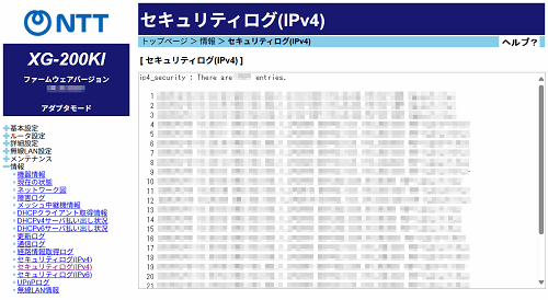 セキュリティログ(IPv4)は以下の項目を表示します。(最大1000件)