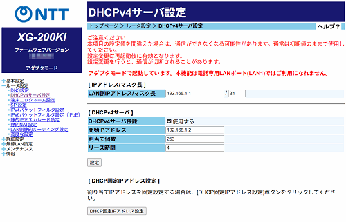 「DHCP固定IPアドレス設定」の画面が表示されます。