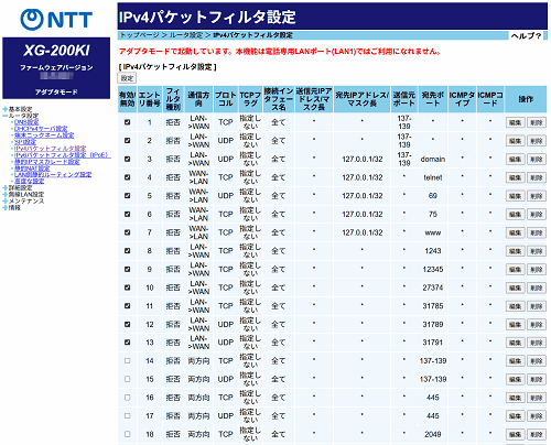 また、エントリ番号14~18を適用すると、NetBIOSなどの意図しないWAN側への情報漏洩を防止できます。
