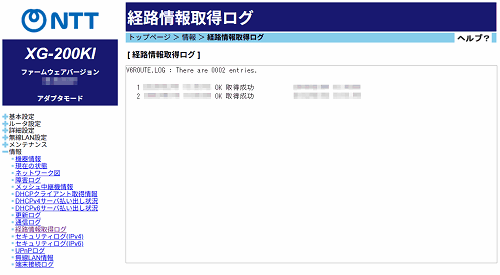 | 表示番号 | 取得日時 | 結果 | 要因 | 経路情報バージョン |