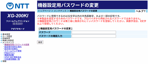 - 機器設定用パスワードは第三者に推測されにくいパスワードを登録してください。