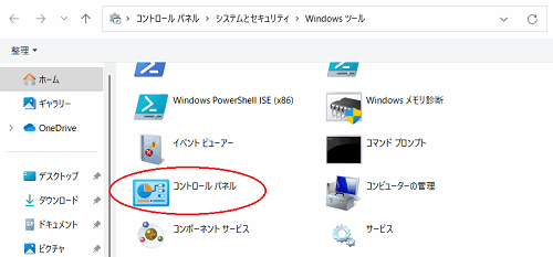- 表示された一覧から[コントロールパネル]をダブルクリックする