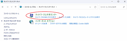 - [ネットワークと共有センター]をクリックする