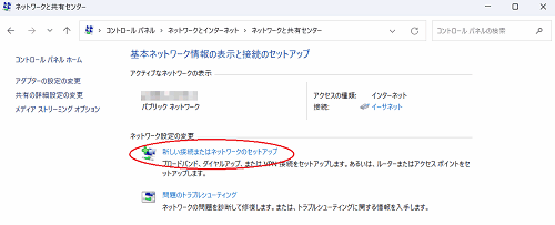 - [新しい接続またはネットワークのセットアップ]をクリックする