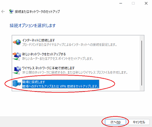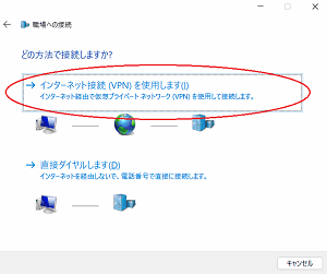 - [インターネット接続(VPN)を使用します(I)]を選択する