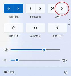 - 通知領域(タスクトレイ)に表示されているネットワークアイコンをクリックし、[VPN]をクリックする
