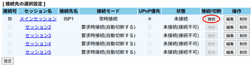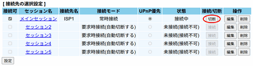 ※ 同時接続可能セッション数以上の接続先を登録している場合は、「接続/切断」で接続先を切り替えて使用してください。
