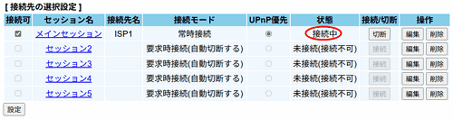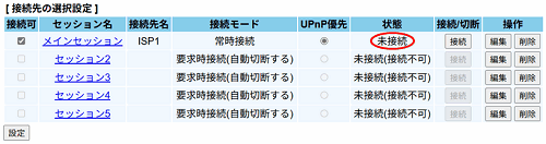 ※ ただし、回線が「未接続(設定エラー)」/「未接続(回線リンクDOWN)」/ 「未接続(接続拒否)」/「未接続(接続不可)」の場合には、クリックできません。