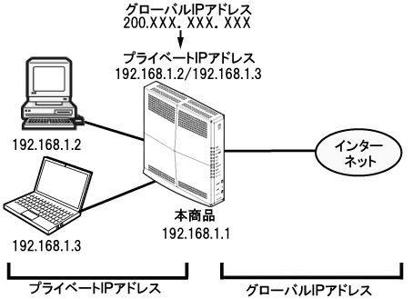 IPマスカレードとは、1つのグローバルIPアドレスを利用して、LAN内のプライベートIPアドレスを持つ複数のパソコンなどをインターネットなどに接続できる機能です。
