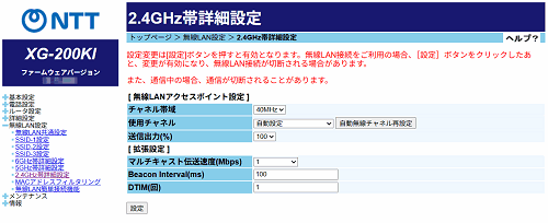 2.4GHz帯詳細設定