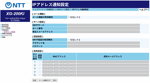 - 本商品の再起動によりWAN側IPアドレスが変更された場合、メール通知に時間がかかります。