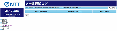 メールの送信結果が確認できます。ログの最大保存件数は30件です。