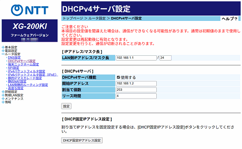 [DHCP固定IPアドレス設定]