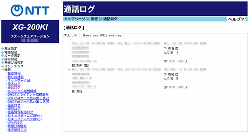 通話ログは、ひかり電話の通信履歴を表示します。