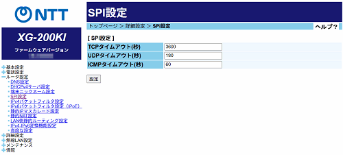 - TCPタイムアウト、UDPタイムアウトの設定が短い場合、通信できなくなることがあります。