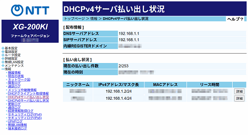 DHCPv4サーバ払い出し状況