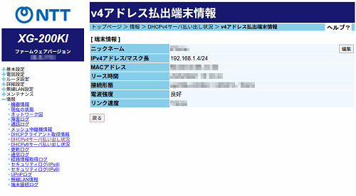 - [詳細]をクリックすると、「v4アドレス払出端末情報」の画面が表示されます。
