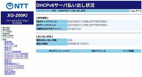 DHCPv6サーバ払い出し状況
