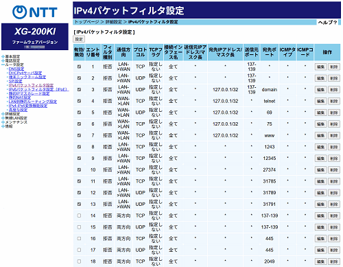 また、エントリ番号14~18を適用すると、NetBIOSなどの意図しないWAN側への情報漏洩を防止できます。