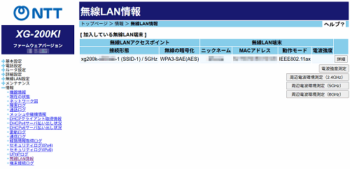 本商品に接続している無線LAN端末のMACアドレスを表示します。