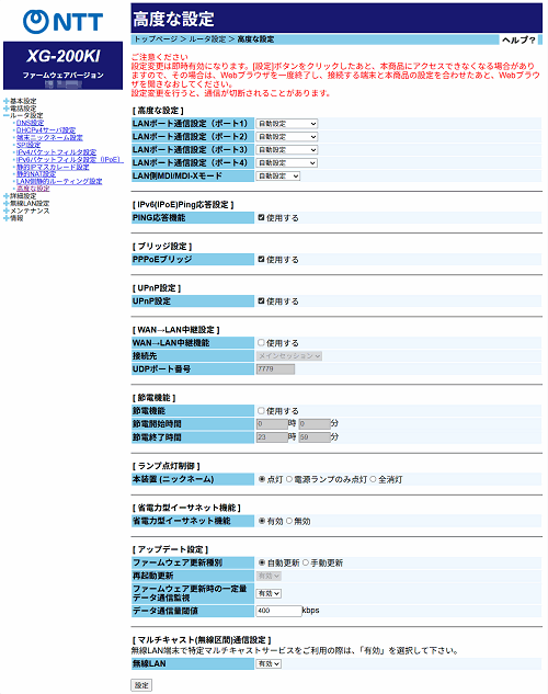 - LAN4ポートの伝送速度を自動で設定します。