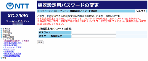 機器設定用パスワードの変更