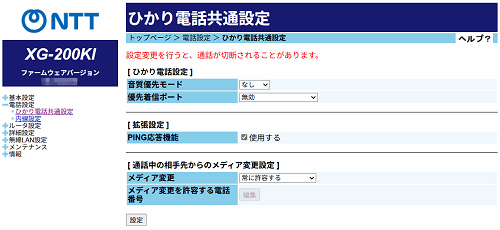 [ひかり電話設定]