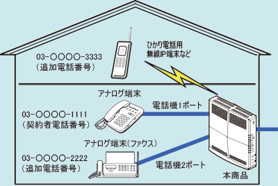 ※ 本商品にIP端末(音声)を接続するには、ひかり電話用無線IP端末などのIP端末(音声)が必要です。